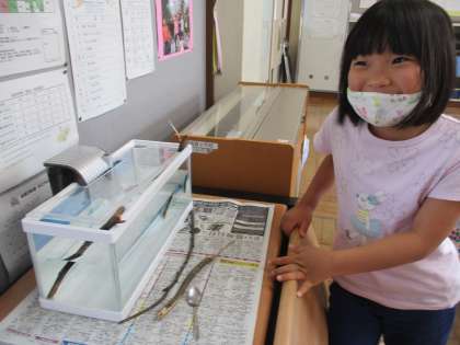 動物を大切に育てる中で「情緒」はしっかりと育まれていきます。去年の2年生を見ていたから、きっとその思いを受け継いでいるのかもしれませんね。この水槽には「生活科DNA」が引き継がれているように感じました。