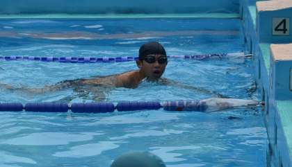 7月15日 いよいよ高学年の登場です。高学年になると迫力が違います。後輩たちも先輩の泳ぎを見ることができるので、期待に胸を躍らせていました。