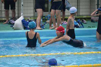 子ども達は、水中氷り鬼や自由泳ぎを楽しんでいました。学年を超えたよい思い出が、また一つ増えました。