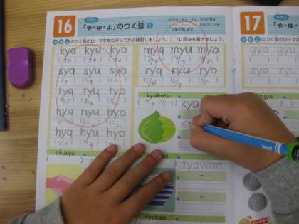 ローマ字を学習しています。「小さい『や・ゆ・よ』のつく音」について学びました。