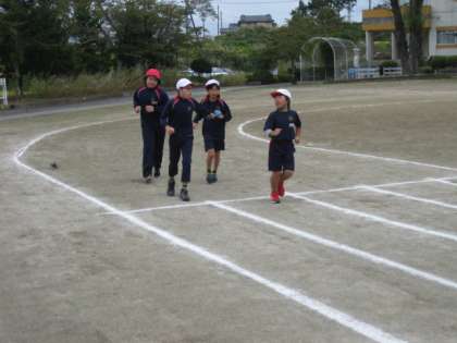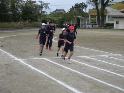 朝の時間も休み時間も練習に取り組んでいます。リレーでは記録が少しずつ良くなってきました。