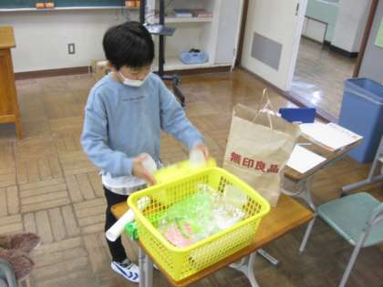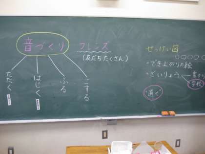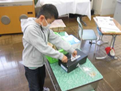 たたく、はじく、ふる、こするから選び、音を出すものをつくり始めました。