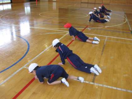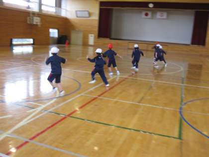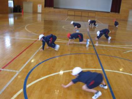 とても寒い1日でした。体育館で準備運動を行った後、「カニ歩き、オットセイ歩き、カエルジャンプ」など、様々な運動を行いました。身体があたたまりました。