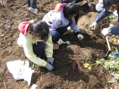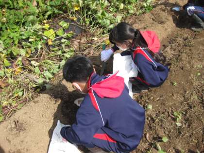 稲刈り体験が終わった後、サツマイモ芋掘体験をさせていただきました。今年のサツマイモは昨年よりも大きく、今年1番の大きさのものがとれたとお聞きしました。