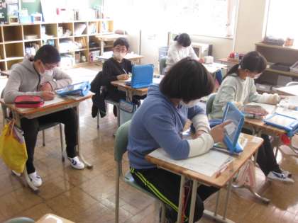 理科では火山の噴火や地震によって、様々な災害が起き、生活に影響を及ぼすことを学習しました。端末を用いてさらに深く調べ、学習したことや調べたことを新聞にまとめています。