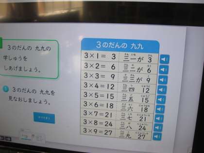 「3のだんのかけ算九九をつくろう」をめあてにして、学習に取り組んでいます。