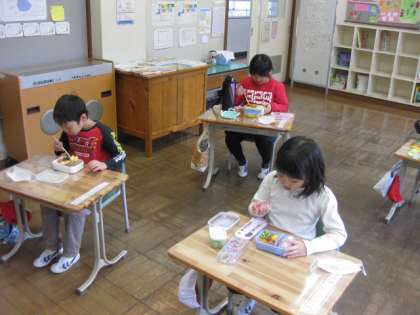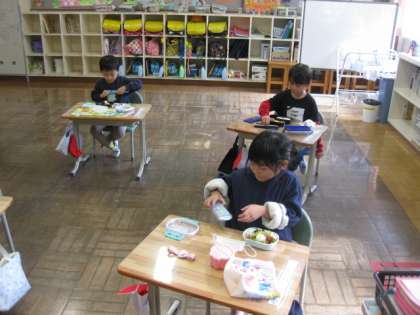 今日はマイ弁当の日です。彩りの良いお弁当やキャラ弁も見られ、子ども達は自分で調理したり、詰めたりしたと話してくれました。中には、朝4時に起きて、弁当づくりにチャレンジした児童もいました。