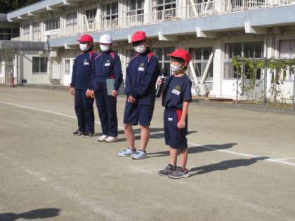 からだ元気委員会が中心になって、閉会式を行いました。成績発表では、各学年1位の児童が呼名され、大きな声で返事をしました。代表児童が感想発表を行いました。