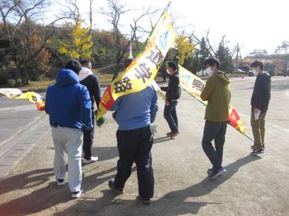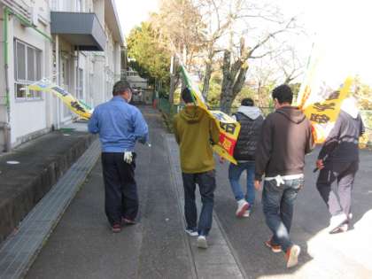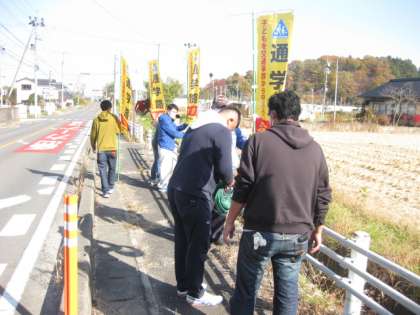 資源物回収の後、車を運転する方へ注意を促すために、通学路を示す旗を設置していただきました。大変ありがとうございました。