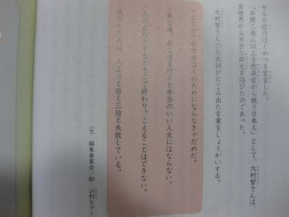 大村さんの人生がにじみ出た言葉について、子ども達からの感想です。