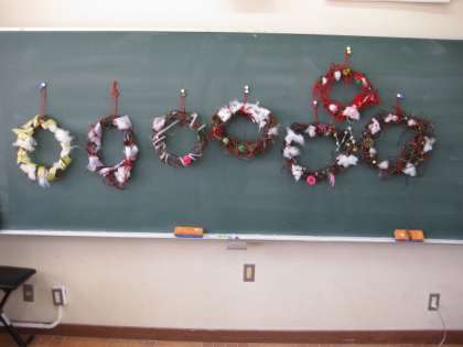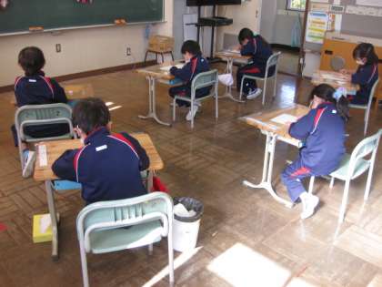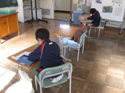 やきいもとリースづくりの振り返りを行っています。静かな雰囲気の中で、振り返りを行うことができました。