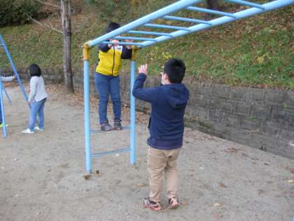 天気もよかったので、昼休みは外で元気に遊んでいました。鬼ごっこをしたり遊具で遊んだり、とても楽しそうです。