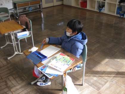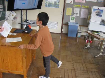 かけ算九九のテストをしています。どの段も、前からも後ろからも言えたら、シールをもらいます。
