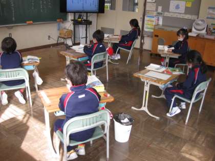 落ち着いた雰囲気の中、国語の授業を進めています。文字をきちんと書いています。
