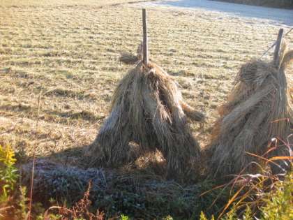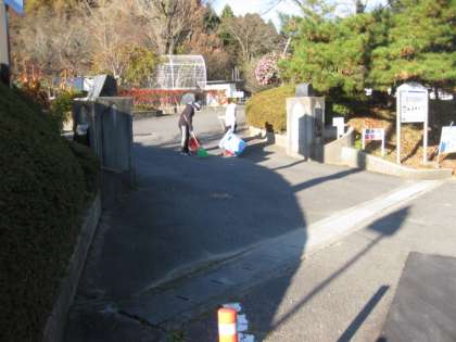 今朝の高倉小学校周辺の気温は約0度程度で、車のフロントガラスが凍っていました。近くの田んぼにも霜が降りました。気温が低い中でしたが、高学年は落ち葉はきのボランティア活動を行いました。