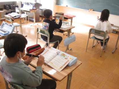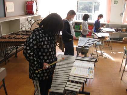 音楽では、リコーダーと鉄琴に分かれて合奏の練習を行いました。