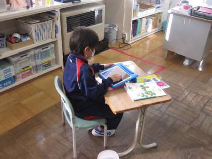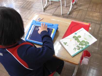 ロイロノートを活用して、ものの名前について学習しました。端末で画像を撮影し、提出箱へ入れました。画像を提示して名前を確認しました。