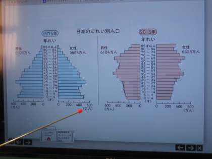 1975年の日本の総人口を求めた後、65才以上の人口の割合を求めました。