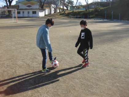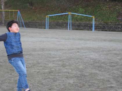 昼休みの様子です。サッカーやフリスビーを行っています。