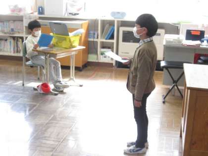まず、作文発表を行いました。発表態度が大変立派でした。