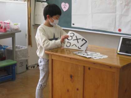 作文発表の後は、制限時間を設けて、かけ算九九に挑戦しました。見事成功です。