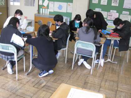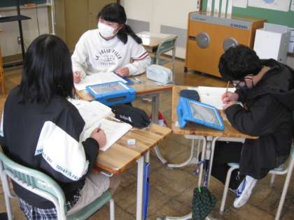 問題の解き方について、グループになって話し合っています。