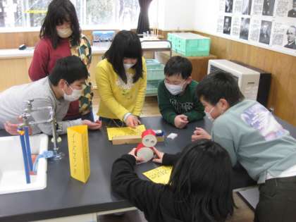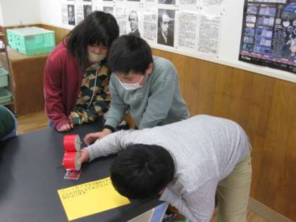 3年生の理科では、2年生に理科の楽しさを伝えるために、様々な遊びを計画しています。今日はそれそれのグループの遊びについて、どうしたらもっと楽しんでもらえるのかを考え、意見を出し合いました。