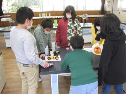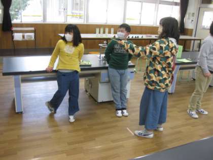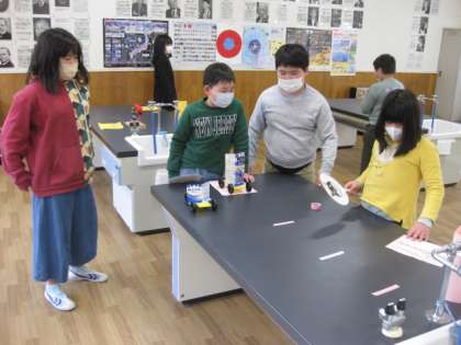 5年生の理科の続きです。「ゴム風ランド」の遊びを体験しています。