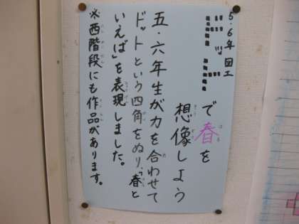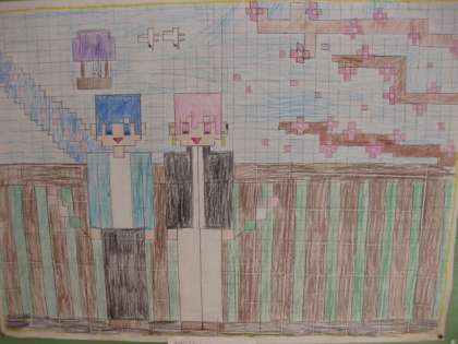 5・6年生の図工の作品を紹介します。作品名は「橋の上で団子食べる2人・・・」です。