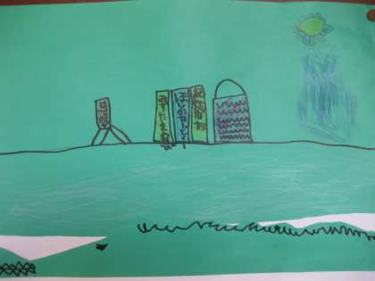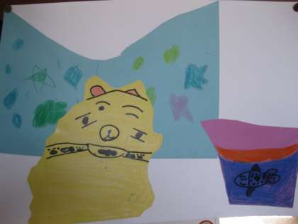 1年生の作品紹介の続きです。作品名は「ねことさかなのぼうけん」、「たなとハブラシ」です。