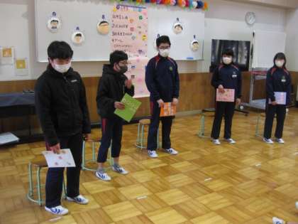 5校時に6年生を送る会を実施しました。初めに拍手で6年生を迎えました。6年生の似顔絵づくりや会場の飾り付け等の準備は、1〜5年生が行いました。