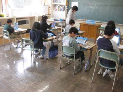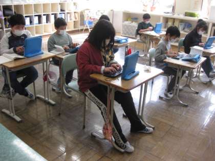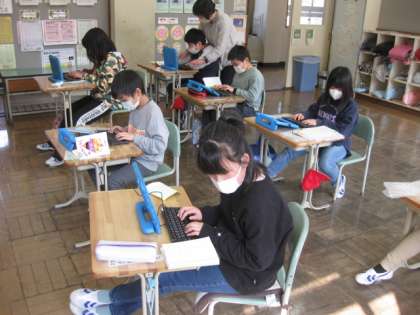 ローマ字入力に取り組んでいます。課題は「校歌1〜3番」です。とても集中しています。