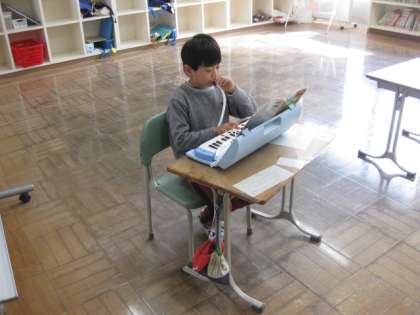 音楽で、オルガンに合わせてピアニカで合奏を行いました。とても上手になりました。