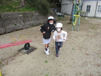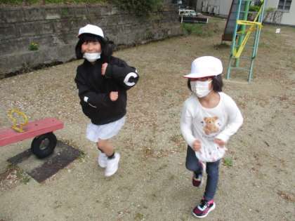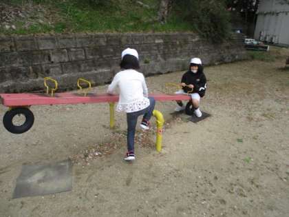 シーソーに乗っていた2人が、シーソーから降りて、ダンスを踊ってくれました。とても楽しいダンスでした。