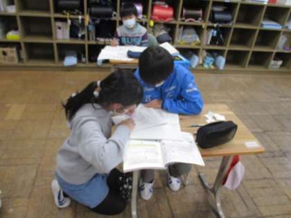 算数の授業の様子です。友達と話し合いながら、学習を進めています。