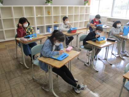 調べ学習において、タブレット端末のロイロノートを活用し、意見の共有を行いますが、今日は導入を行いました。子ども達の操作は完璧でした!