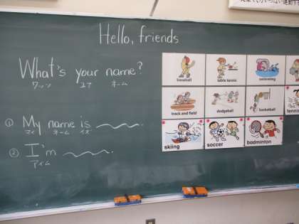 AETの先生との授業です。「What's your name?」についてを学習しました。