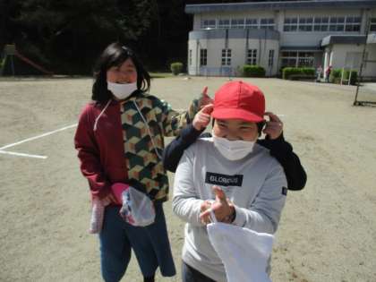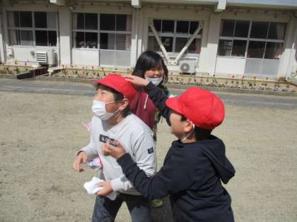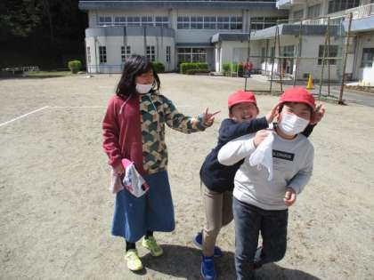 今日は清掃を行うため、昼休みは短時間でしたが、雑巾を持って外で遊んでいました。とても楽しそうです。