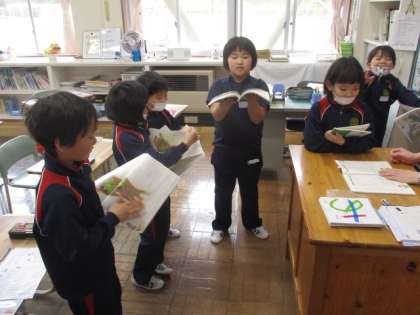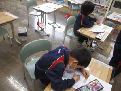 本日の授業の様子を一部お届けします。1・2年生の国語の授業です。2年生は教科書の音読について、気持ちを込め工夫して読むことができました。1年生は、なぞり書きを行いました。