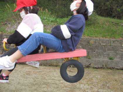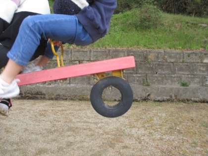 シーソーを勢いよく行ったので、おしりが10cm以上宙に浮いています。見事です。