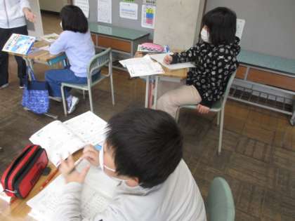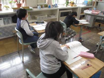 4年生の算数の授業です。足し算・引き算・かけ算・わり算をそれぞれ、和・差・積・商と呼ぶことを学習しました。