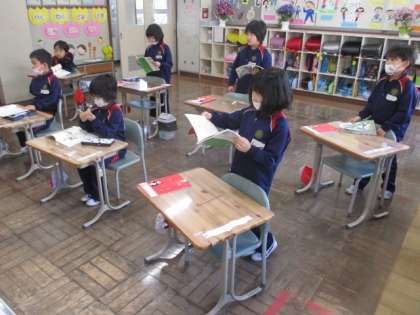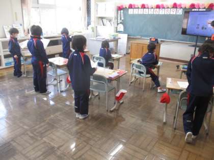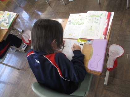 授業の様子を一部お届けします。1・2年生の国語です。2年生は教科書「春がいっぱい」について学習し、春が感じられるものを書き出しました。サクラやタンポポ、ツクシ等の他に、入学式や運動会等もありました。
