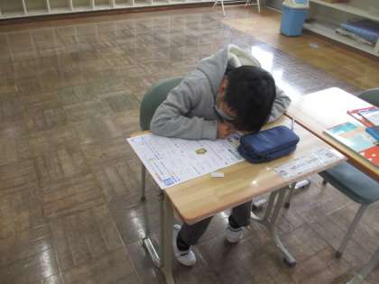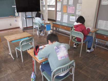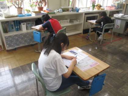 4年生は算数の、5年生は国語の確認テストに取り組んでいます。