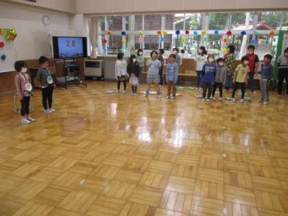 ゲームが終わった後に、全員で校歌を歌いました。最後に1年生はしっかりとお礼のあいさつをすることができました。入学して2週間経ち、1年生の子ども達は学校生活に大分慣れてきてようです。2年生から6年生も、それぞれの学年で下級生の世話をしたり、上級生のサポートをしたりするなど、成長の跡が感じられます。今日の1年生を迎える会は、5・6年生が自分たちで企画・運営を行い、主体的に行動する姿が素晴らしかったです。