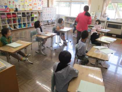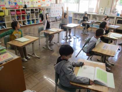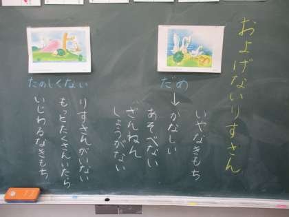 1・2年生の道徳です。泳げないリスになったつもりで発表しました。全員が発表することができました。
