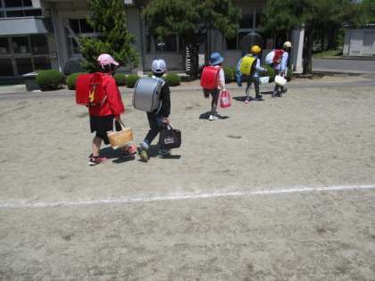1〜4年生は、4校時終了後に一斉下校を行いました。今日は4年生が班長なので、4年生の皆さんがお兄さん・お姉さんに感じられました。