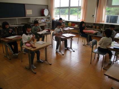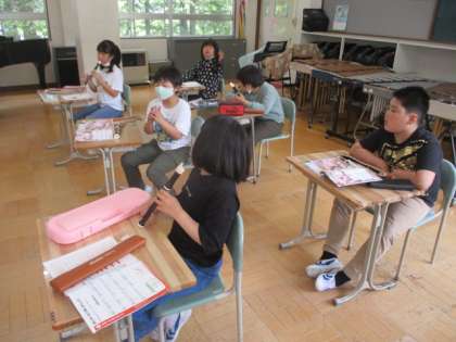 今日の授業の様子を一部お届けします。3・4年生の音楽です。ソプラノリコーダーの練習をしました。