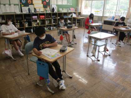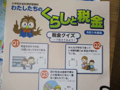 6年生では,郡山間税会の方に講師としてお越しいただき、租税教室を行いました。子ども達はとても真剣に説明を聞いていました。