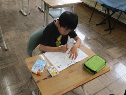 今日の授業の様子を一部お届けします。3年生の算数です。大変集中して、計算問題に取り組んでいます。
