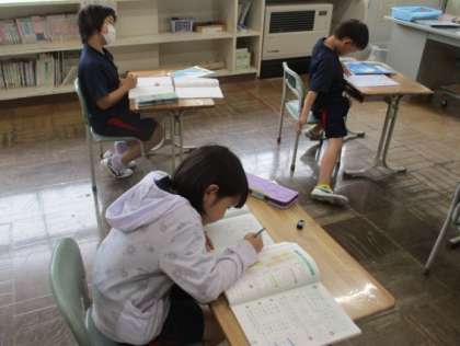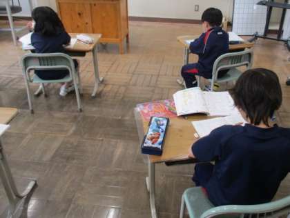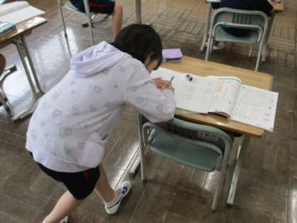 2年生の算数です。2桁の数の引き算を筆算で計算しています。間違ったところはもう1度計算して、今度は正解です。